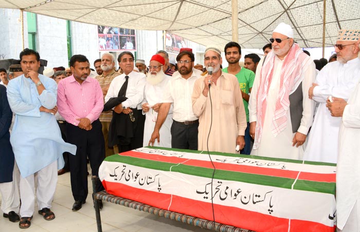 The dead body of Shahbaz Mustafavi was brought to the central secretariat of MQI in Model Town after post-mortem where funeral prayers for the deceased were offered by hundreds of workers and leaders of MQI and PAT. Shaykh-ul-Islam Dr Muhammad Tahir-ul-Qadri led the funeral prayers.