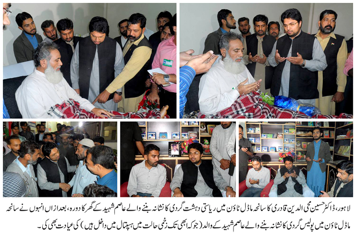 These views were expressed by PAT Federal Council Chairman Dr Hussain Mohi-ud-Din Qadri while talking to families of Model Town and Wagha border tragedies during his visit to their homes on November 07. He individually met heirs of martyrs and enquired after their well-being. He paid glowing tributes to the bereaved families for their patience and courage in the face of daunting personal tragedies.