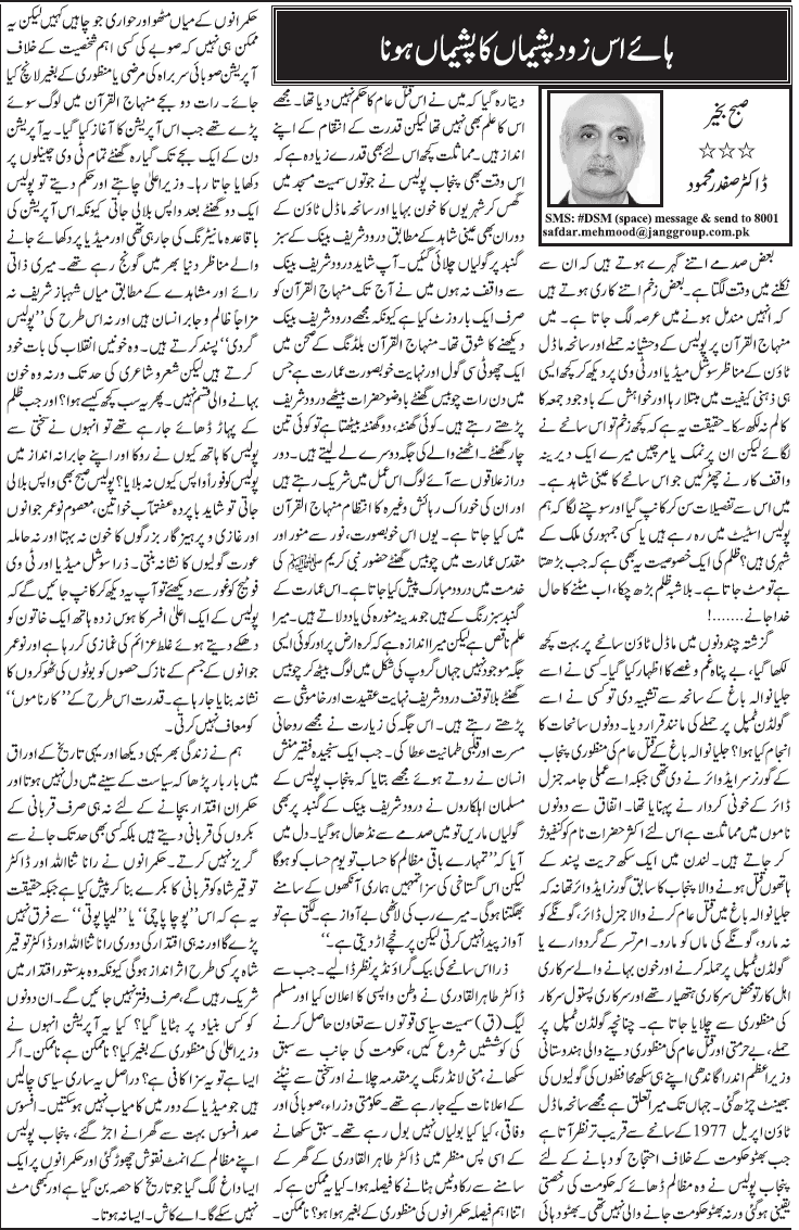 Haye us Zood-e-Pasheman ka Pasheman Hona - by Dr Safdar Mehmood (Daily Jang, 22 June 2014) Share this Story