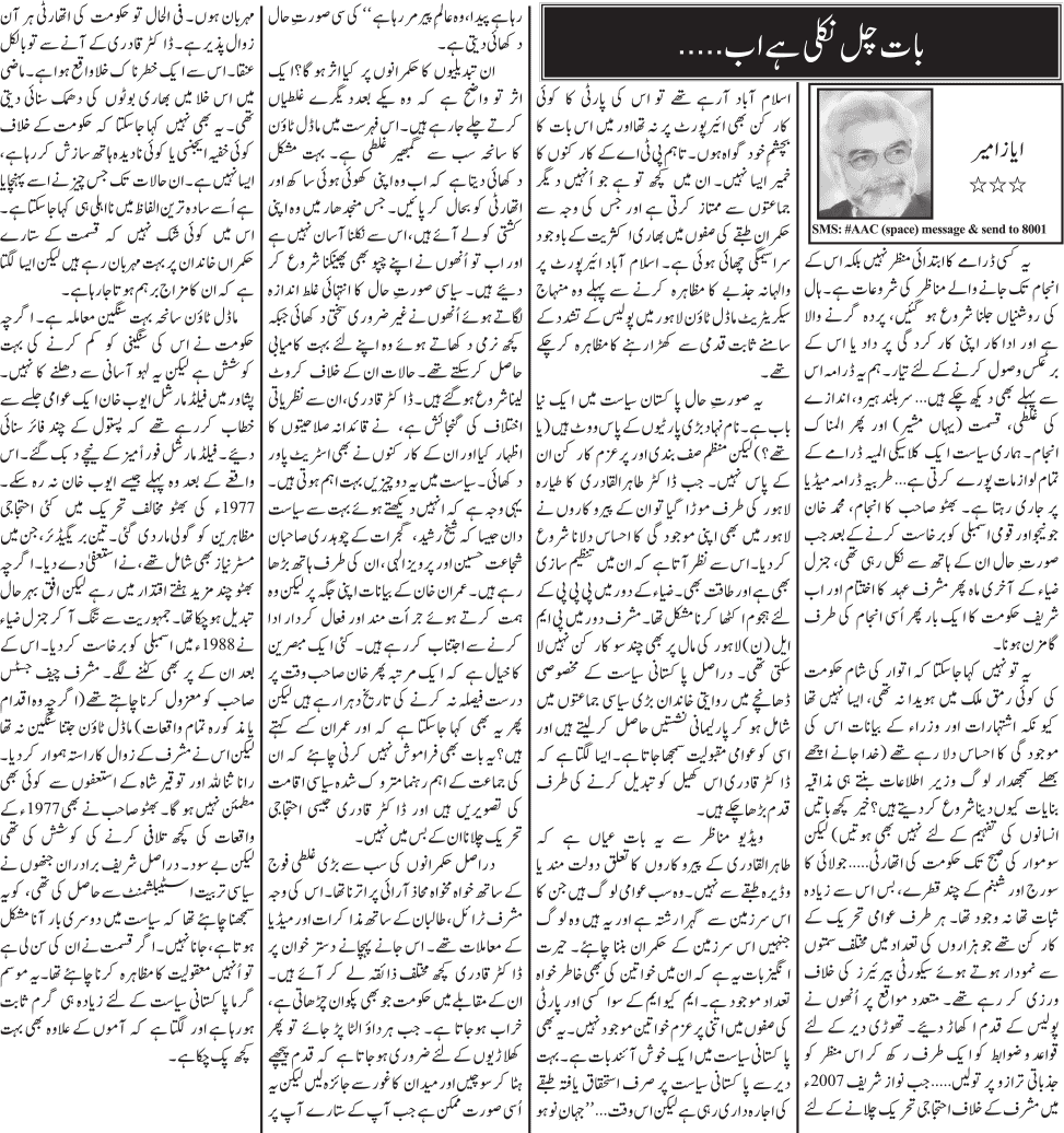 Baat Chal Nikli hai Ab - by Ayaz Ameer (Daily Jang, 25 June 2014)