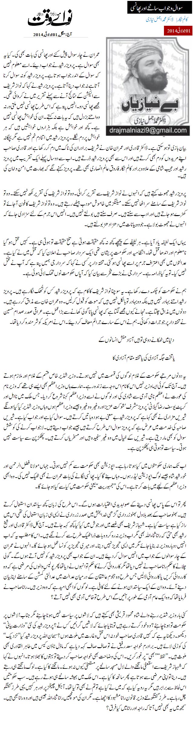 Sawal o Jawab Saniha or Phansi - by Dr Muhammad Ajmal Niazi (Daily Nawa-i-Waqt, 01 July 2014) Share this Story
