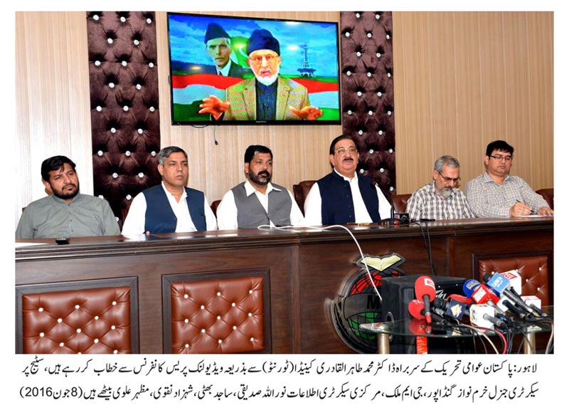 Addressing a press conference through a video link from Canada, Dr Tahir-ul-Qadri has announced the schedule of his return. He said that he would reach Lahore on the morning of June 15 and lead the sit-in on The Mall on June 17 to demand justice for martyrs of Model Town tragedy. He said that he is guarantor of peaceful protest and peaceful sit-in, adding that the government should refrain from its highhanded tactics. He said that the corrupt rulers would not be able to complete their term in office. He said that the dawn of hope is in sight. He said that we have extended invitation to the heads of all political parties to attend the protest slated for June 17. He said that he will announce his next line of action to seek justice at the time of the sit-in. He said he could not say for how long the protest will last.