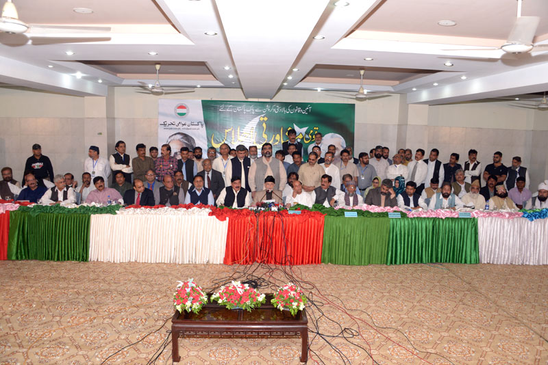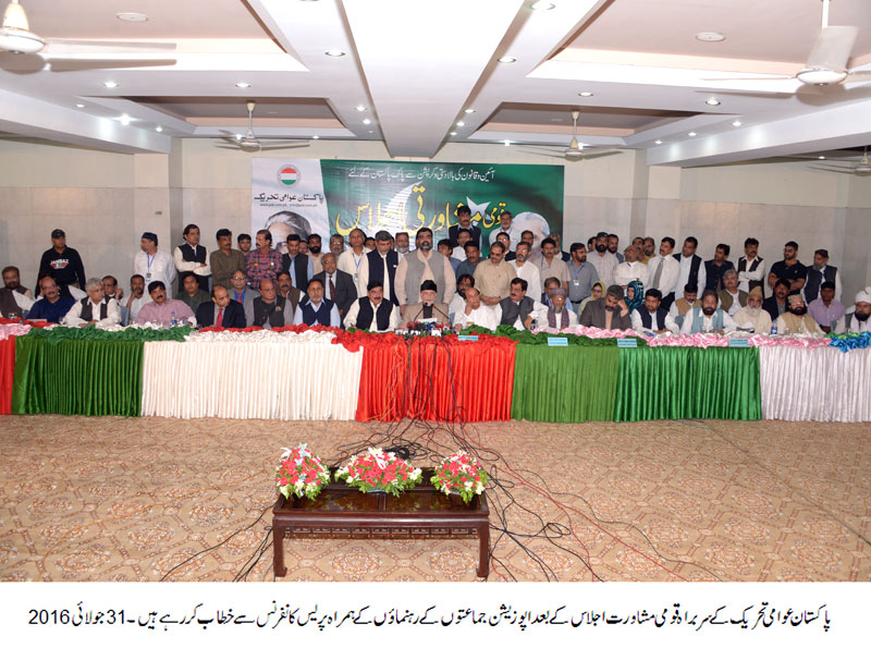 At the conclusion of the conference, an eight-point joint declaration was also approved. The declaration included seeking Qisas in the Model Town killing incident and also included seeking the prosecution of the prime minister and the inclusion of the names of his family members in the Panama Leaks. Its demand included an operation by the Pakistan army in Punjab against terrorists and extremists and their supporters and financiers. He also condemned the barbaric acts of India in Kashmir.