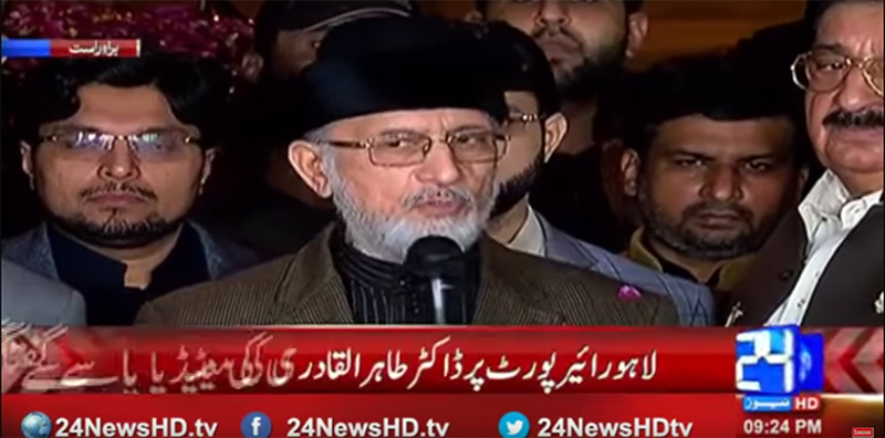 Dr Tahir-ul-Qadri talks to media at Lahore Airport (Acid test of state institutions has begun) - December 6, 2016 Facebook Share this Story
