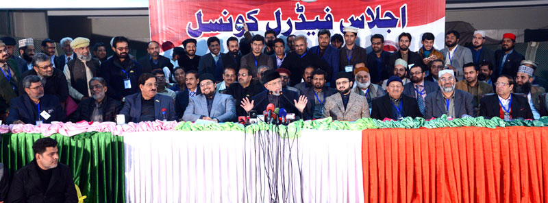Dr Tahir-ul-Qadri was joined by Dr Hassan Mohi-ud-Din Qadri, Dr Hussain Mohi-ud-Din Qadri, Khurram Nawaz Gandapur, Brig. (r ) Muhammad Iqbal, Basharat Jaspal, Fayyaz Warraich, Rafique Najam, Noorullah Siddiqi, Sardar Shakir Mazai and others on the press conference.