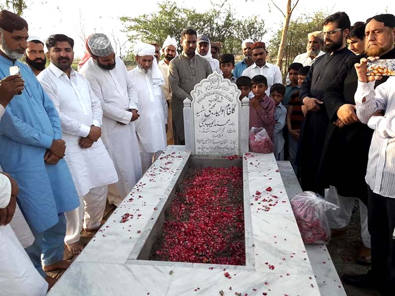 A delegation of PAT leaders and workers led by Khurram Nawaz Gandapur, Noorullah Siddiqi, and Hafiz Ghulam Farid presented themselves at the graves of the six of the martyrs in Lahore, placed floral wreaths and offered Fateh. They also visited the residences of the families to express their solidarity with them and gave this message that MQI and PAT continue to stand by the families of martyrs through thick and thin. The delegates also went to the graves of Tanzila Amjad and Shazia Murtaza Shaheed and made Dua for their souls.