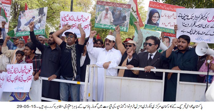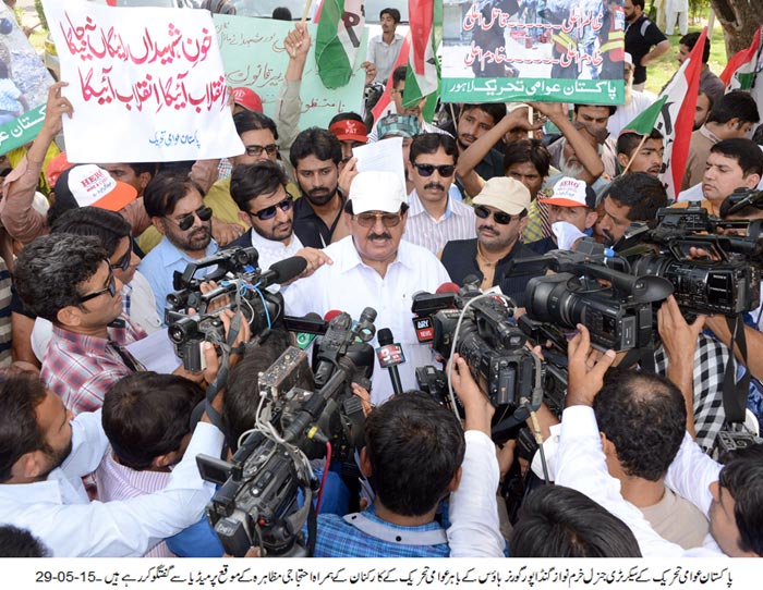 Khurram Nawaz Gandapur said that the JIT is the handmaiden of the government and we fully reject the JIT and condemn its report. He said that we will continue our protest to get justice for our oppressed people and knock at every door for this purpose. He said that protest letters are being written to the human rights organizations, European Union and embassies of the world regarding oppression perpetrated by the rulers in Model Town and violation of human rights. He said that CDs of footage of Model Town incident recorded by the national television networks are also enclosed with the letters.