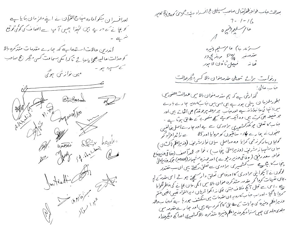 Meanwhile, 42 PAT workers, who are under trial on the government’s FIR, have expressed their no confidence in the judge of anti-terrorism court Khawaja Zafar Iqbal, adding that the judge has a biased attitude, which is part of a carefully scripted plan. They prayed for the trial of the case by another court.